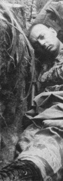 His radio operator chugged along behind him, scared and winded.
